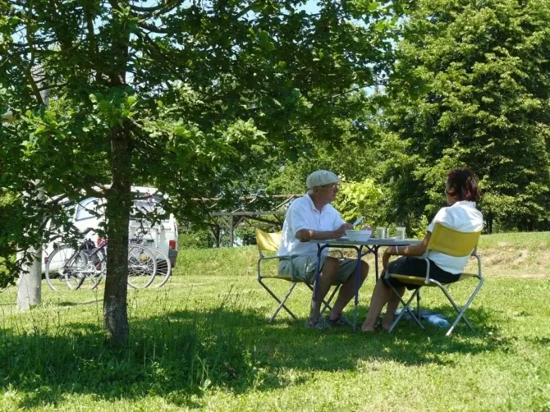 Verspreid over ca 3 hectare kunt u in alle privacy ontspannen op een van onze 40 ruime en schaduwrijke kampeerplaatsen, die allemaal (optioneel) op elektriciteit aangesloten kunnen worden.