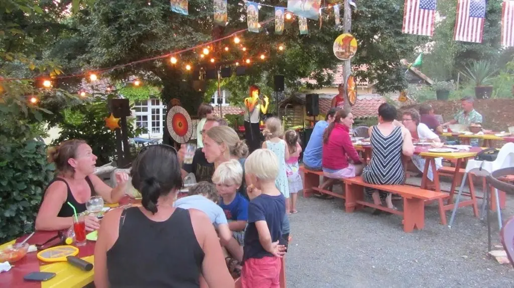 De camping beschikt over een petit restaurant / bar. Daar is ook de gratis wifi-hotspot. Op ons gedeeltelijk overkapte terras is het goed toeven. Je geniet hier van lekker eten, een lokaal biertje of een borrelplank met streekproducten. Wij serveren hier ook speciaal bier van de ambachtelijke dorpsbrouwerij. Regelmatig kun je aanschuiven bij onze gezamenlijke eetavonden aan de lange tafel, ontspannen, ongedwongen en gezellig. We bakken ook de lekkerste pizza’s en maken overheerlijke menu’s klaar. Vegetariërs hebben ook altijd keuze.