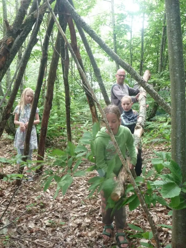 Hutten bouwen in het speelbos
