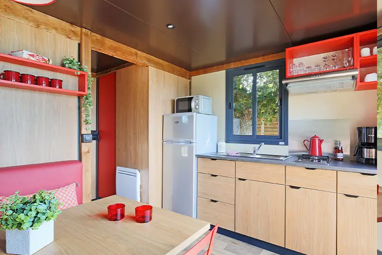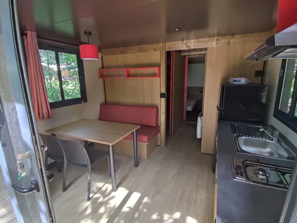 Deze bijzondere accommodatie is geschikt voor een stel met twee kinderen. Deze nagenoeg nieuwe huuraccommodatie staat op een grote schaduwrijke plek op fijne afstand van het zwembad en de speeltuin. Binnen is de roulotte gezellig en modern ingericht. Samen met het terrasje zorgt dit voor een intieme en knusse accommodatie. De slimme indeling zorgt voor een aangenaam gevoel van ruimte, waardoor je optimaal kunt genieten van je verblijf.
